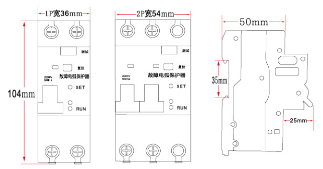 ■ 外形尺寸: 1P+N(36* 104*75mm) 2P+N(54* 104* 75mm)